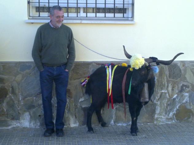 Paulino junto con el macho cabrio,