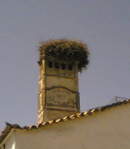 pero las cigueñitas... Con sus nidos, se han encargado de fastidiarla. Esta chimenea fue hecha por mi bisabuelo, portugués para mas señas. No es la única que hizo. Sus hijos, Pepe y Gonzalo construyeron otras de las chimeneas características de nuestro pueblo, así como la fachada de la casa de la cultura.