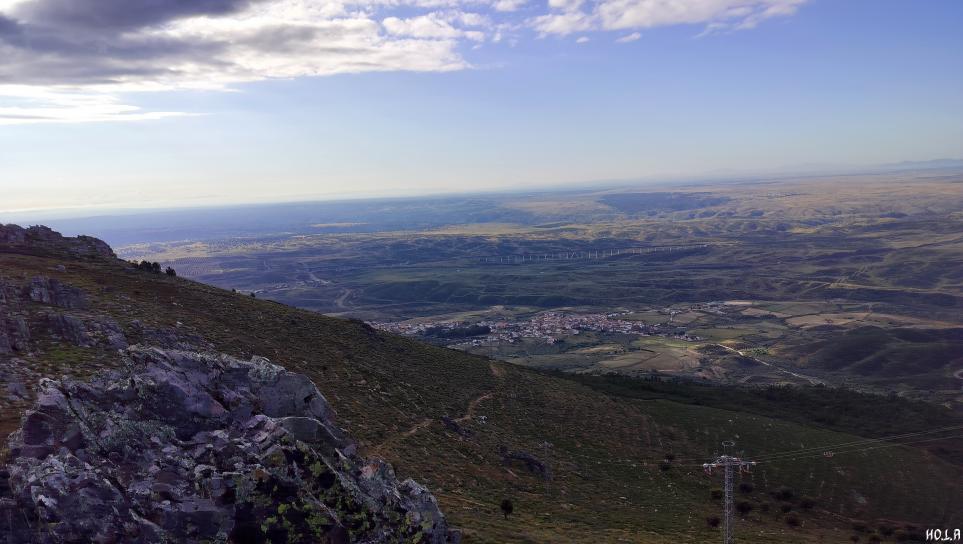 La otra vertiente de La Silleta nos enseña el embalse de Portaje o Torrejoncillo, pero también la sierra de Gata, Hervás y Béjar, así como parte del valle del Alagón.