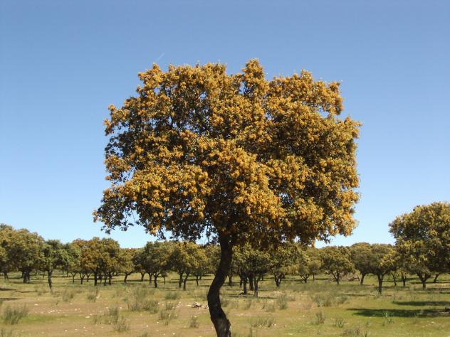 Encina en flor,