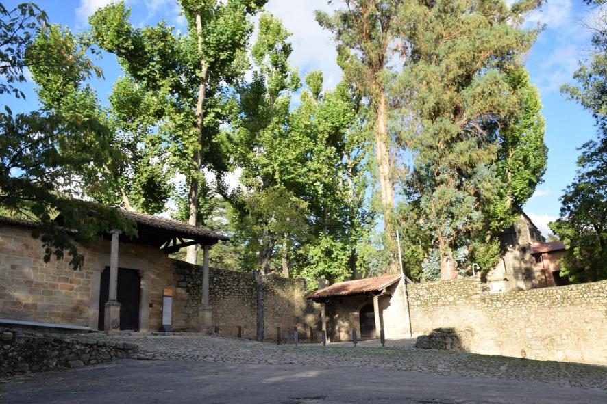 Altos árboles guardan la entrada al Monasterio de San Jerónimo de Yuste,