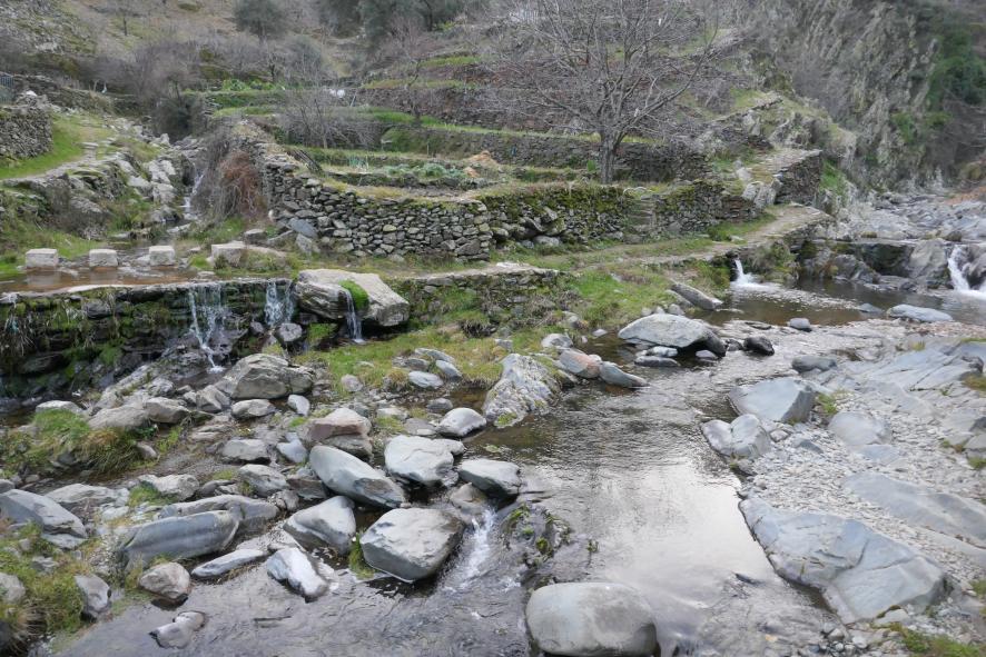 Paso de piedras para cruzar el arroyo de Obo,