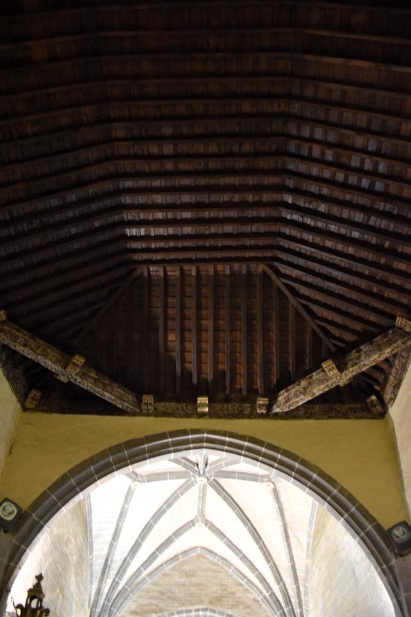 Vista parcial del artesonado mudéjar y bóveda gótica de la iglesia parroquial,