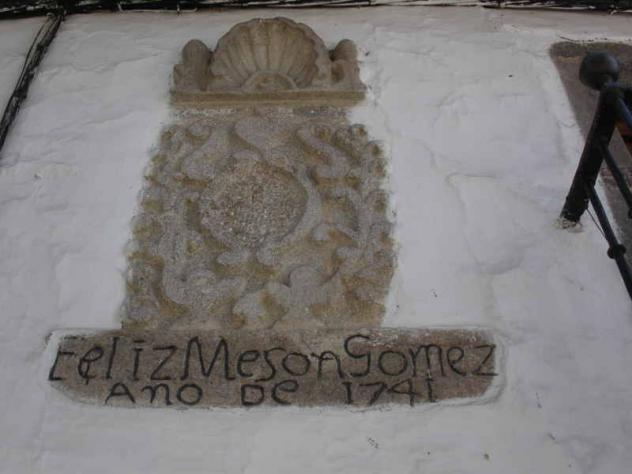 Creo que el titulo está mal: Meson no se refiere a un tipo de establecimiento, es en realidad el primer apellido. El escudo, como se puede observar, tiene picada la parte central, al parecer debido a la extrecha relación que tenia la familia Mesón Gómez con la inqusición al abolirse esta institución borraron el escudo en señal de protesta. Todo lo anterior se puede leer en placa que axiste en la fachada. ¿ Aún no le internaron ? Po ya va siendo hora . Keko, tu visita al piquiatra no la aplaces más.