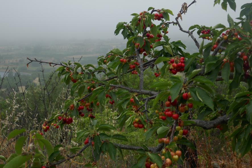 Las cerezas listas para la recogida,