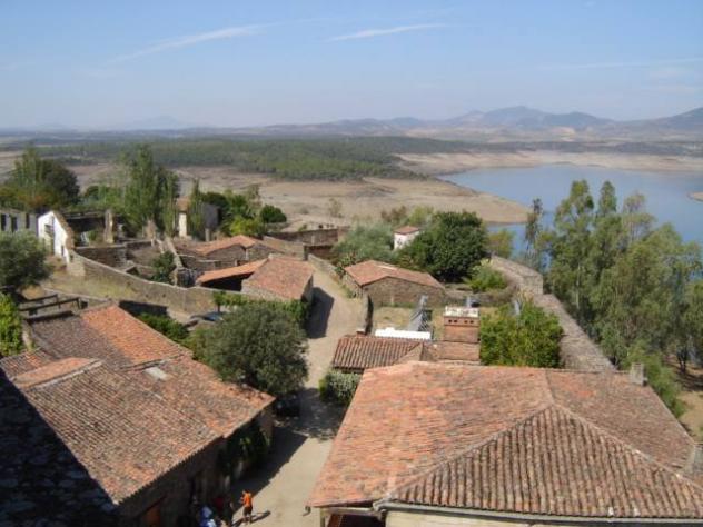 Vista parcial del pueblo y embalse,