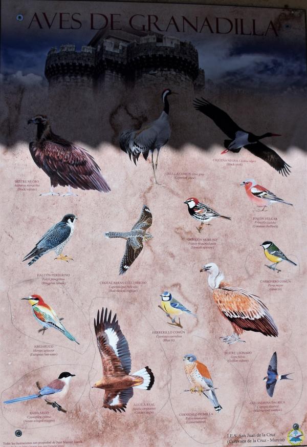 Panel informativo sobre las aves del lugar,