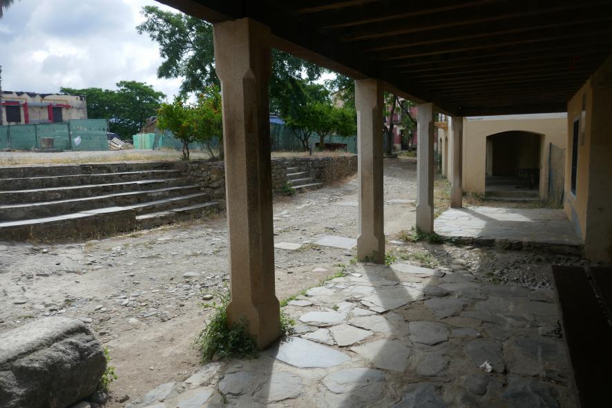Soportales en la plaza del pueblo,
