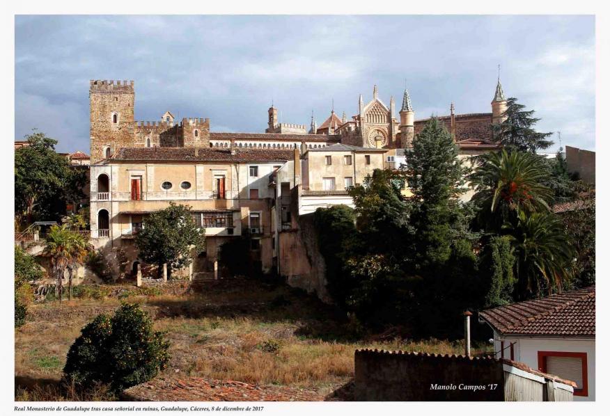 Real Monasterio tras casa señorial en ruinas,