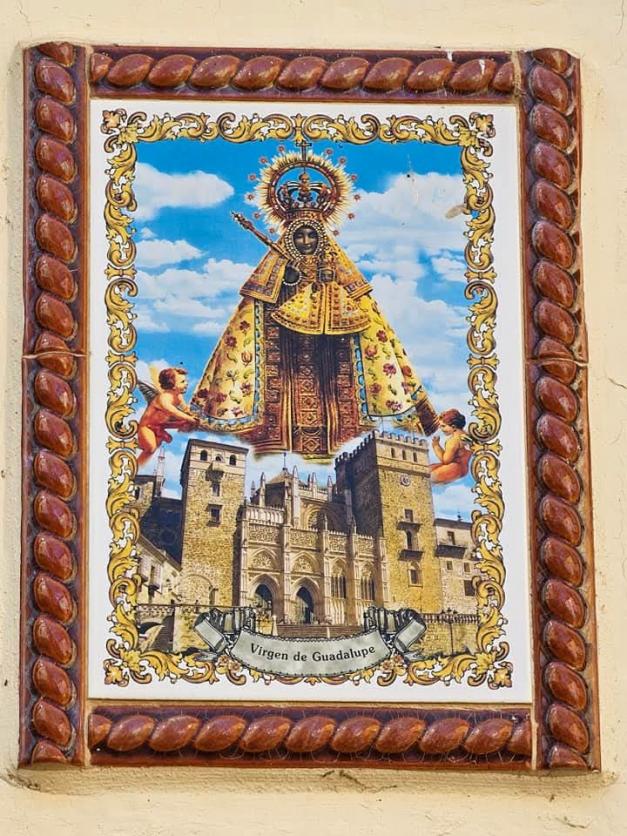 Imagen de la Virgen de Guadalupe en una fachada,