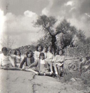 Grupo de amigas en los canchos de la pileta (foto antigua),