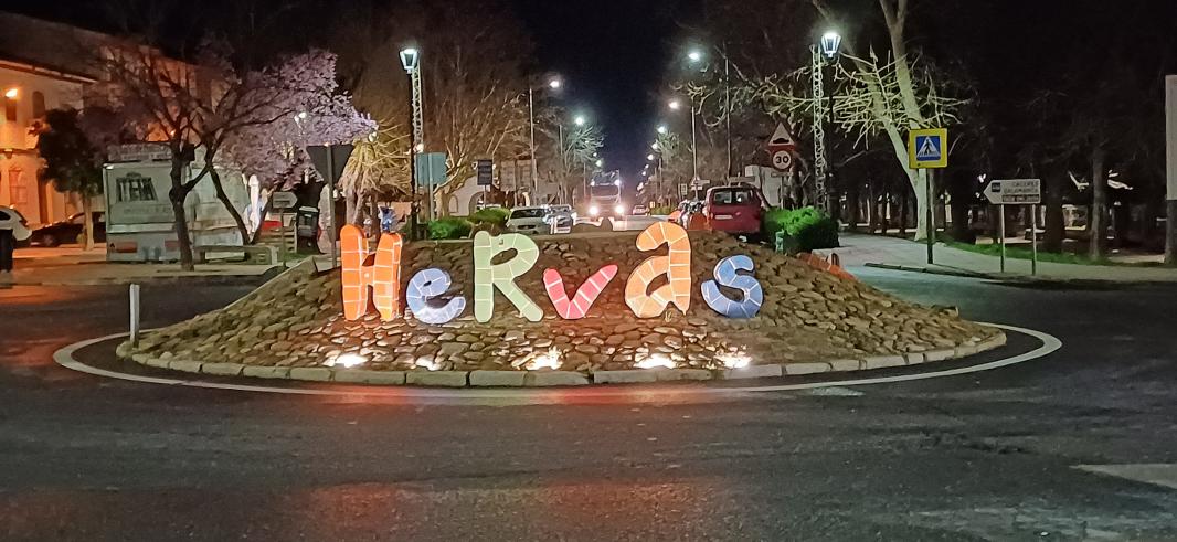 En la rotonda de acceso al pueblo,