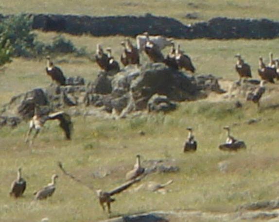 Saqué esta foto ceca de San Berto pero no observamos ningún animal muerto, simplemente se fueron acumulando los buitres poco a poco, como si los que están en la peña llamasen a los otros... :]. Madre que de buitres, por ahi se abra muerto algun animal.