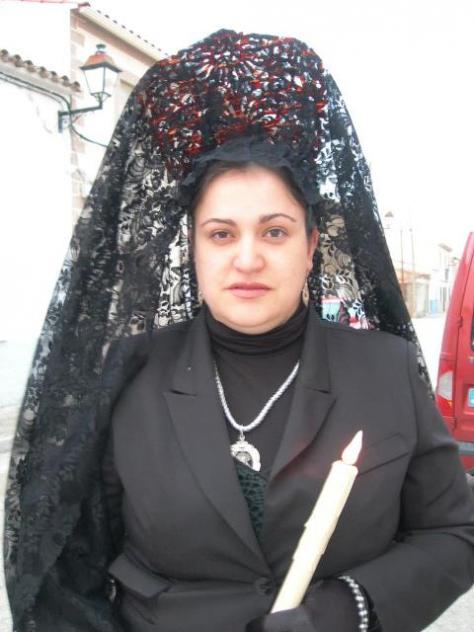 Yesica de mantilla en la procesión ,