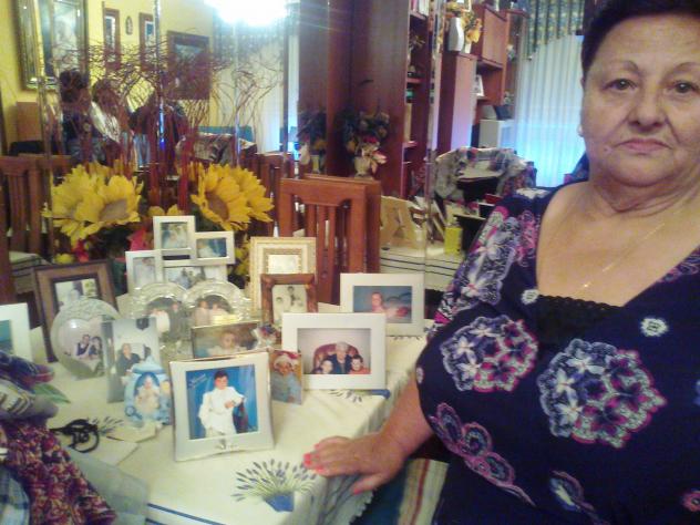 en el salón de mi hija rodeada de fotos,