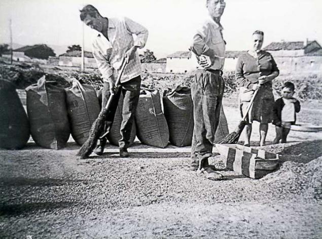 en la parva cogiendo el trigo,
