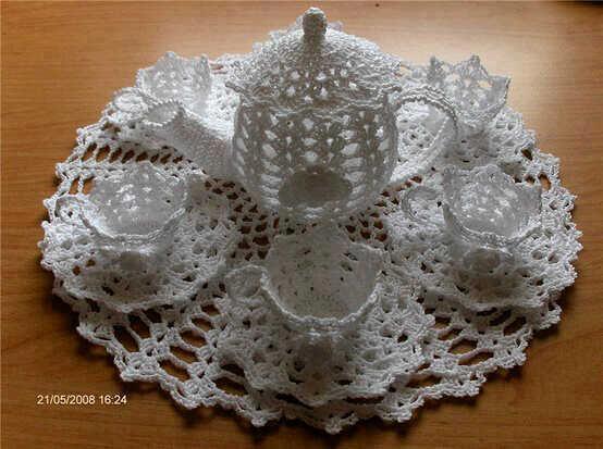 juego de tazas de ganchillo,