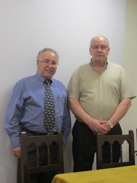 fotografía representa a dos escritores extremeños: el novelista José Luis Pablo Sánchez, de Navalmoral de la Mata y el poeta Wenceslao Mohedas Ramos, de