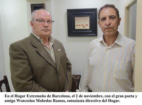 La fotografía representa la visita que me hizo el amigo Moisés Cayetano Rosado, profesor de Historia, novelista, poeta, jefe de publicaciones de la Junta de Extremadura y uno de los redactores de la Revista de Estudios Extremeños. El motivo de la visita era documentarse para realizar una reseña de mi cuarto libro, "COSECHA LÍRICA", para incluirla en esa Revista de Estudios Extremeños.