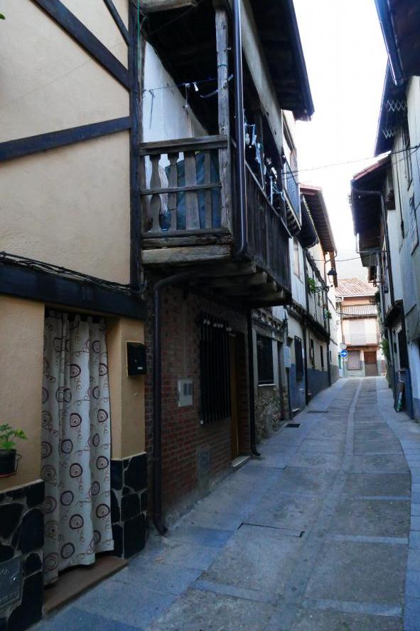 Balcón de madera sobre las vigas maestras,