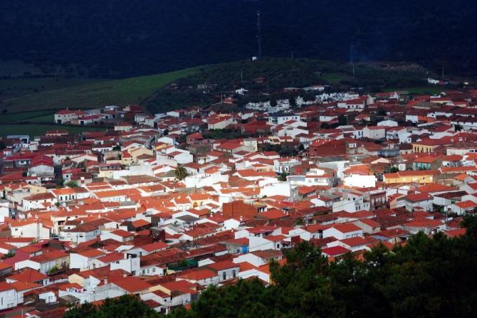 Vista parcial de la población durante un día oscur,