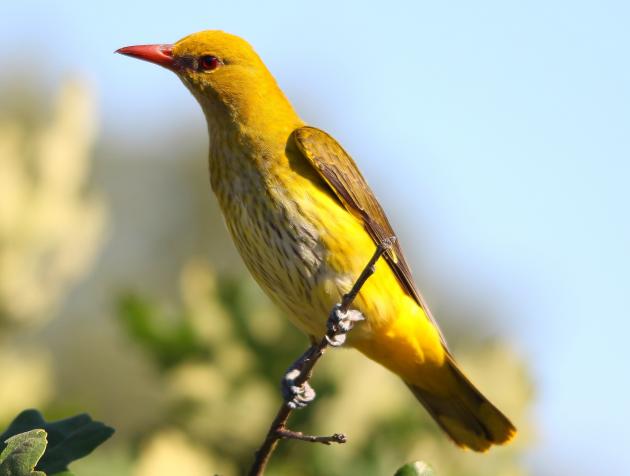 Saludos En el mes de abril, cuando los árboles comienzan a cubrirse de hojas, se oyen los primeros silbidos, claros y sonoros, de la Oropéndola Europea, que resuenan por encima de todos los cantos del bosque. El ave es difícil de ver, pues apenas abandona las frondosidades altas.