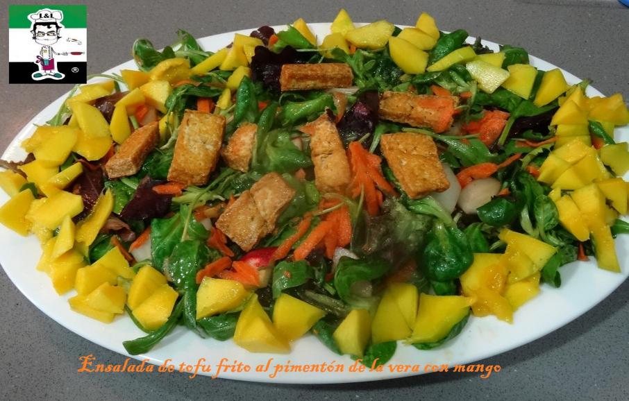 Tofu frito al pimentón de la vera con mango (Ensalada para 2)