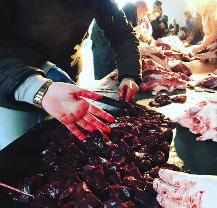 la matanza, troceando el higado,