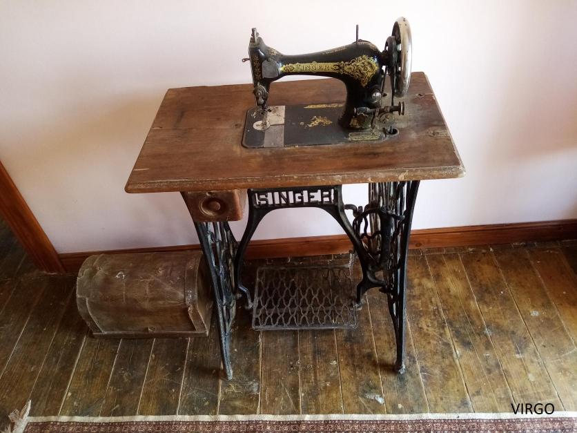 Muy antigua es esta máquina de coser y probablemente haya hecho muchos pantalones de pana.