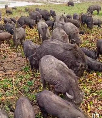 naturaleza viva, cerdos por la vereda,