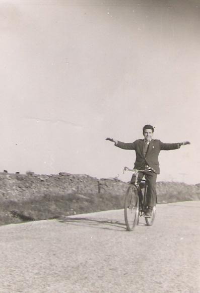 Exactamente, con los brazos en cruz encima de la bicicleta, y que era muy usual. SALUDOS.