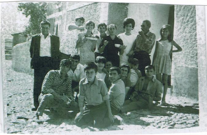 ¿Qué decir de esta fotografía?. El tio Felipe, Perico, Felipe Fortuna, Emilio, su hermano Vicente y su hermana Juana, su padre, Antolín (q. e. p. d.), la Mari, la Luisa y me parece que la de la mano en el cuadril es otra Mari, y el que mete la mano en el plato es su hermano Agustín. creo que la cara que se vé al fondo abajo es de otra Luisa, prima de la anterior y como "manejantas" del asunto las dos más salás de aquel nuestro entorno: la tía Angela y la Rosa. A todos vosotros vaya mi saludo y mi...
