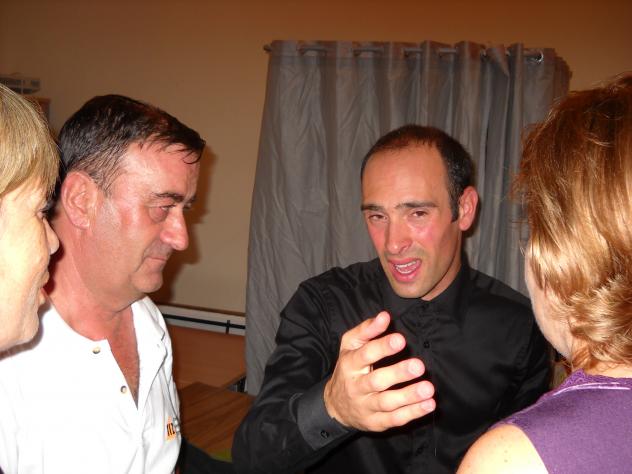Pero el que da las explicaciones, al final es Moisés. SALUDOS. Efectivamente preguntas corrientes. Que segurasmente fueron contestadas atraves del don de la palabra. Pero amigos como senti no poder oir la emocion que transmitio esa mano que aparece en el centro de la imagen y de la otra que no aparece. El tiempo que ha pasado desde que Josefina Rigolfas le enseño a decir "buenos dias" pasando sus manos sobre un teclado. Como se dieron cuenta en Agen de lo bien que "hablaba" el muchacho pulsando aquella linea de blancas y negras. ¡Lo que es la vida!, desde el... Aunque no nos gusta retomar temas o asuntos ya abarcados, con MOISÉS vamos hacer una excepción; ya que sus tía Luisa, Isabel y Juani nos pueden echar la bronca; pero nos vamos a centrar lo que ocurrió en el DESCANSO del concierto. Visitamoa a Moisés en el camerino y le hablamos del concierto de Tel- Aviv, del Instituto Cervantes. En fin... preguntas corrientes. SALUDOS.