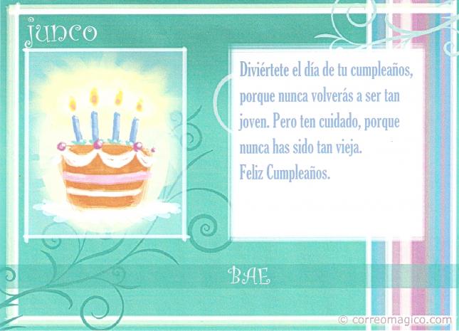 junco espero que hoy por fin sea tu cumple porque sino te bamos a estar felicitando todo el año jaaaaaaaaajaaaaa es broma muchas felicidades da recuerdos a tu hijo y al señor tesorero un abrazo