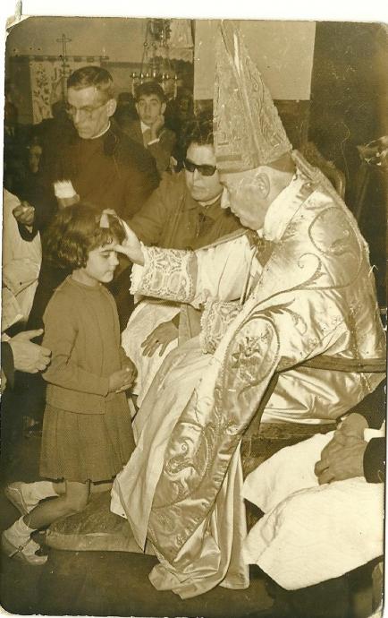 Y terminamos con la foto; pero antes aunque no importe mucho, diremos lo que poca gente sabe: A nuestra izquierda, casi debajo de la lámpara y en el suelo del prebisterio, había pegada a la pared una minúscula "repiensas ciega", que servía para echar el agua residual procedente del lavatorio o lavado del sacerdote oficiando misa. Son quizás anécdota que no van a ninguna parte... como salir el portero municipal (si, si... antes había portero en nuestro Ayuntamiento), a buscar o encontrar a un niño...