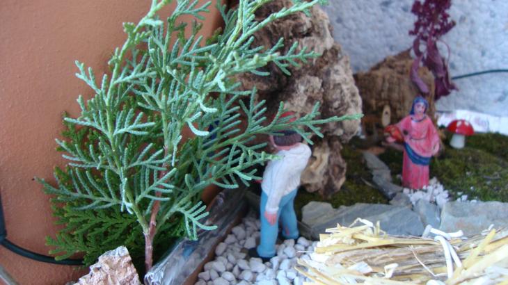 ese esta meando claro como los belenes duran tanto el hombre tendrá ganas pero le a pillado la señora de rosa mira como tuerce la cabecina para mirar.....