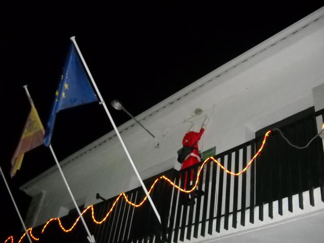 Escalando por la fachada del Ayuntamiento,