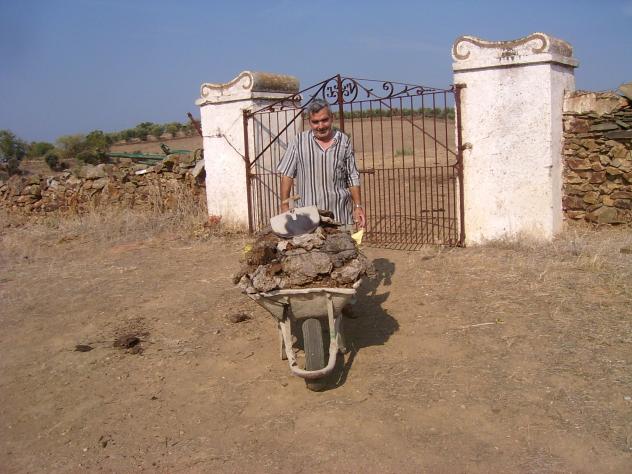 Vicente llevando estiércol para la huerta,