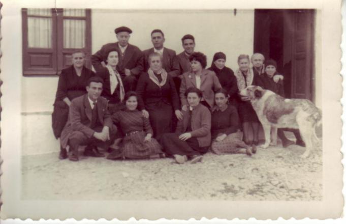 LA FOTO, "gentes de la casa grande", una de esas fotos que recordamos de niños, como anécdota a la señora colocada en el segundo lugar mirando de frente se asomaba por una de las ventanas que da al palacio llamándonos la atención ya que golpeábamos la pared con el balón y no le dejábamos concentrarse cuando rezaba que por lo visto lo hacia muy a menudo, un día le respondimos y hoy nos arrepentimos "pues no rece usted tanto", acto seguido apareció el perro del retrato para meternos miedo por lo que...