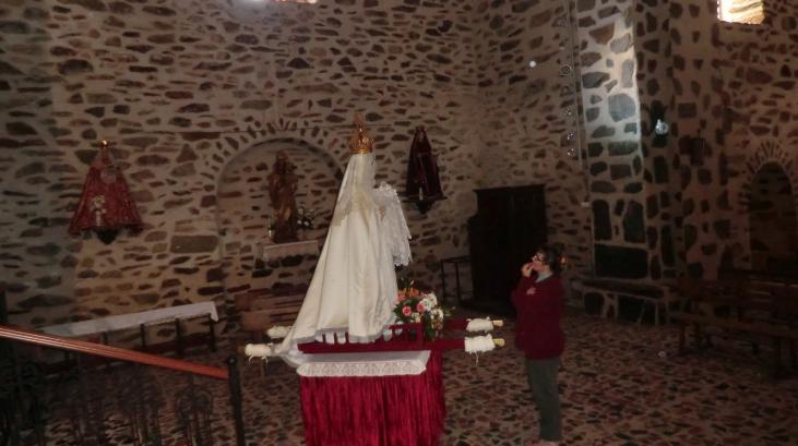 Una devota se acerca a la Virgen,