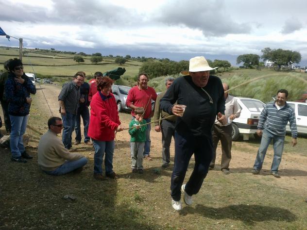 Un saludo... FCC, la comba podía ser otro juego para practicar este verano y no precisamente los hijos sino los padres. Las risas iban a estar aseguradas. Olivares, eres un campeón. Viendo a los demás en la foto tenía que ser un espectáculo verte saltando, y además con el vaso en la mano. Genio y figura. Abrazos. Este OLIVARES, es la leche; por cierto... te estoy esperando; dile algo a tu amigo, que he puesto una foto suya, lo mismo la próxima vez que me vea, me cuelga. El olivares saltando a la comba, pero tiene que dejar de fumar para la proxima...