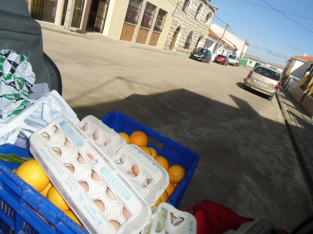 ¡Que buenos huevos te llevas!. Todo ecológico, lo mismo que la cosecha de naranjas. Que os aproveche.