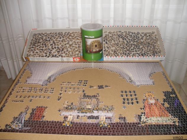 Segundo paso, puzle sobre la mesa para colocar piezas. VIRGO ya lo tienes "chupáo" menos mal que no tienes que hacer la pared, porque madre mía...íbas a terminá mareao con tantas piedras je, je