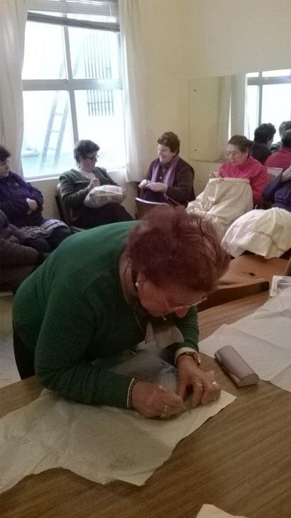 Perdón, lo que ha hecho Kica ha sido una cortina para su baño preciosa y como le sobró tela, está haciendo otra cosa Poco a poco vamos aprendiendo cosas, Kica ya se atrevió a dibujar su siguiente labor, que terminó una toalla para su baño preciosa, también os la pondré