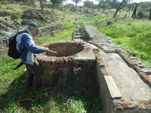 Las poyatas de las paredes desaparecen como un día desaparecieron los poyos en la cocina. Es la fuente mas completa de todo nuestro término. Poyo para llenar cantaros o vasijas, el agua que se vierte a los distintos abrevaderos, y si estos se llenan... el agua a a una pequeña huerta. SALUDOS. Don Gregorio examinando los agujeros del brocal del pozo. Buenos recuerdos A. M. D. cuantos cantaros y garrafas de esa de aceitunas abre llenado yo en eso fuente, madre mía, cientos, todos los días sacaba agua para los trabajadores, ya que yo les cocía los garbanzos. Esa es la fuente la RAYA, que está entre mortera y solana, más arriba estaba unas corralas y una buena charca hecha a piedra, estilo a un pantano, de no ir en busca de ellos, no se encuentran, la última vez que pase, tuve que pasar por infinitas alambradas para hacer el recorrido. Ya nos queda menos, para dar otra vuelta por estos campos de Dios. SALUDOS. Ya se ve que es muy bonita. Es verdad que algunos pozos tenían! poyaras! para coger el agua directamente y hay que pensar que aquella gente, eran unos malavaristas.