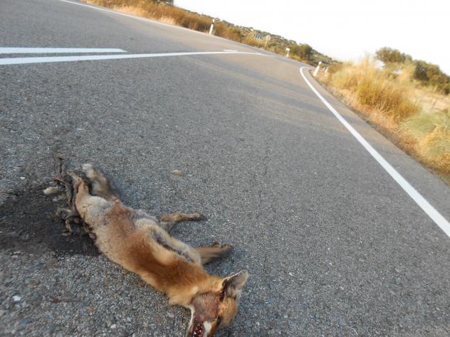El zorro yace en la carretera,