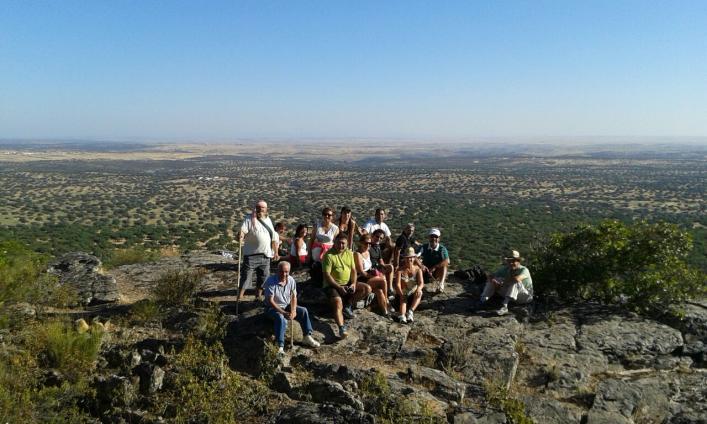 CORAL, ya se que te dio mucha rabia no poder ir a ésta ruta, yo también lo sentí por ti, pues eras de las mas interesadas en ir, pero como no estaba programada tuvimos que adaptarla a ese dia. De todas formas, en S. Santa si podemos volveremos y os gustará mas, porque subir allí en primavera... BUAF! eso es una maravilla. Ya nos contaras si has estao con l@s paisan@s que están hoy ´por ahí de excursión. Un beso. Hola paisanos. Saludos, que no he dicho nada. Me dio mucha rabía no poder ir a esta caminata, pero no se puede estar en misa y repicando. Yo ya estaba camino de Zaragoza, pero el próximo año si Dios quiero, no me lo pierdo. Estoy segura que tiene que ser un paisaje precioso. esta marcha fue interesante, algo mas larga de lo esperado y dura, pues lleguemos cansados. las vistas fueron espectaculares y recomendamos que se unan mas gente otro año. divisemos buitres y se dice que en dias sin calima se puede divisar hasta caceres, en fin nos gusto mucho y loren fue un buen guia del torrico. gracias Aquí descansando un rato y contemplando las vistas en el cancho del soldao
