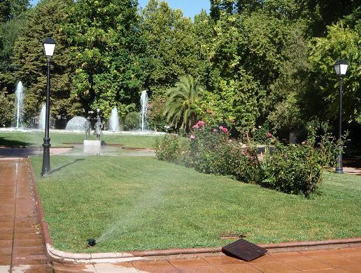 Flores y árboles en el parque,