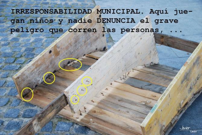 Ayuntamiento. ¿Dónde están los responsables municipales que NO SE HAN PERCATADO del enorme peligro que corren, sobre todo, los pequeños que por aquí juegan?. Las GRANDES púas que señalo son de casi 10 centímetros, verdaderos "puñales". En fin, sin comentarios, luego pasa lo que pasa,...