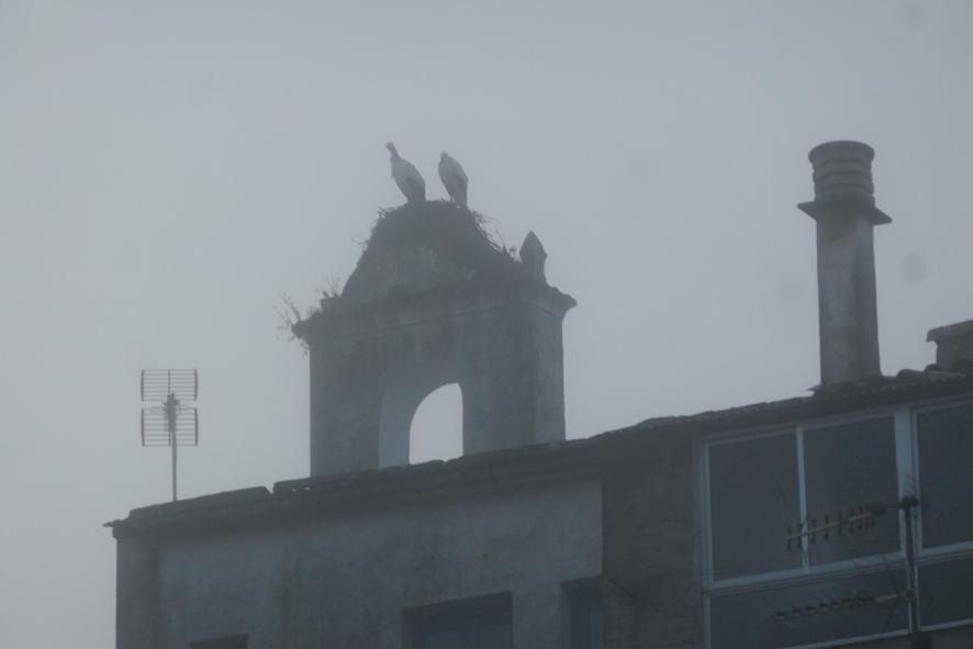 Las cigüeñas esperando que asome el Sol,